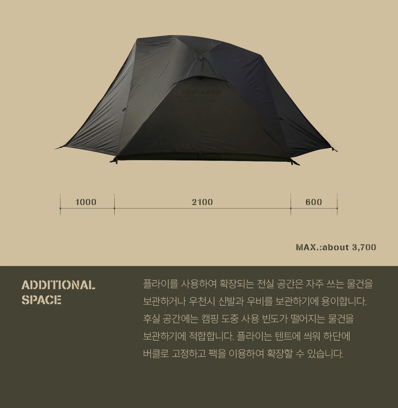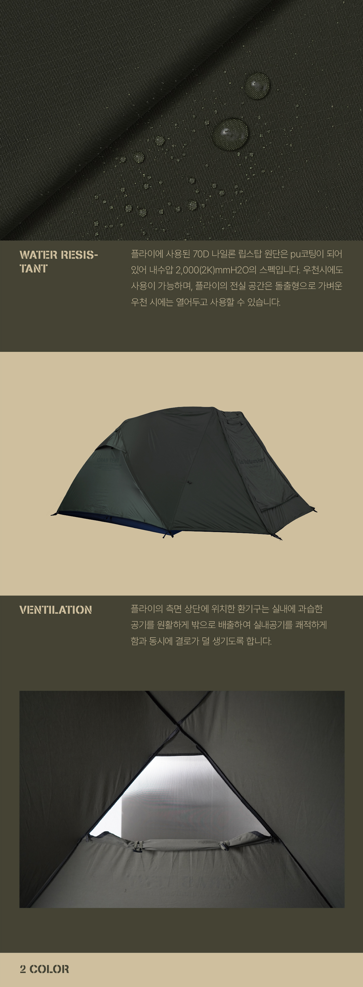 210g T/C(65:35), 210D Poly, Etc(2,000mmH2O) / W2800 D2100 H1600