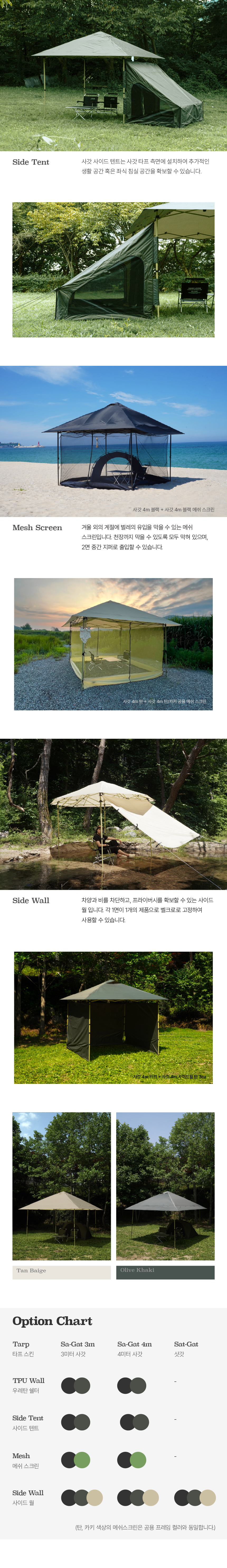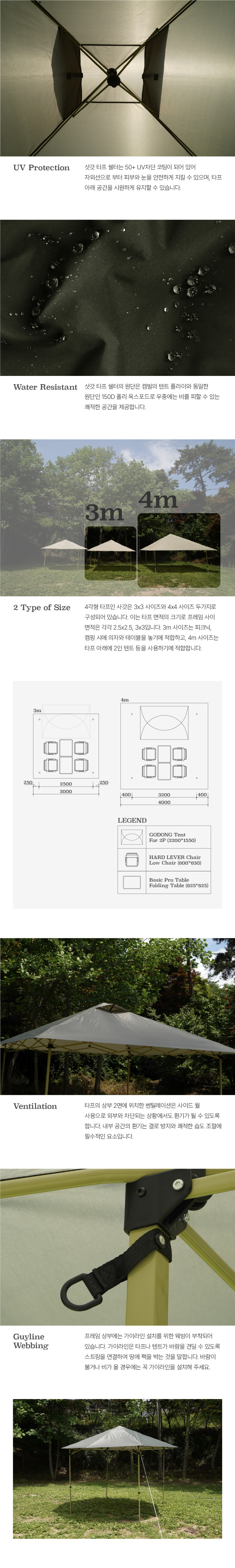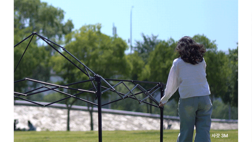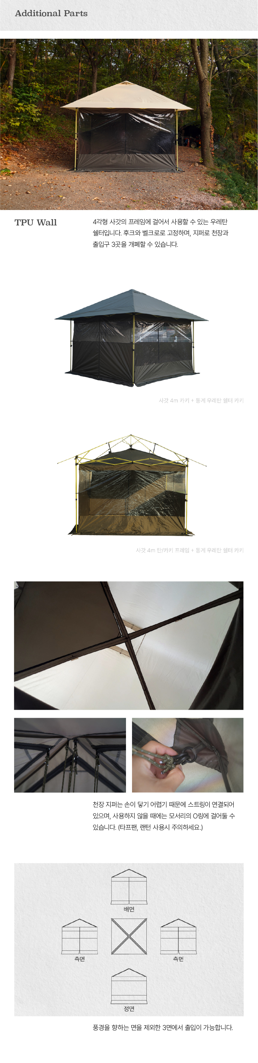 2. 타프 스킨의 모서리 네곳에 프레임을 꽂아주세요.