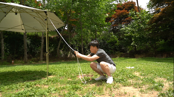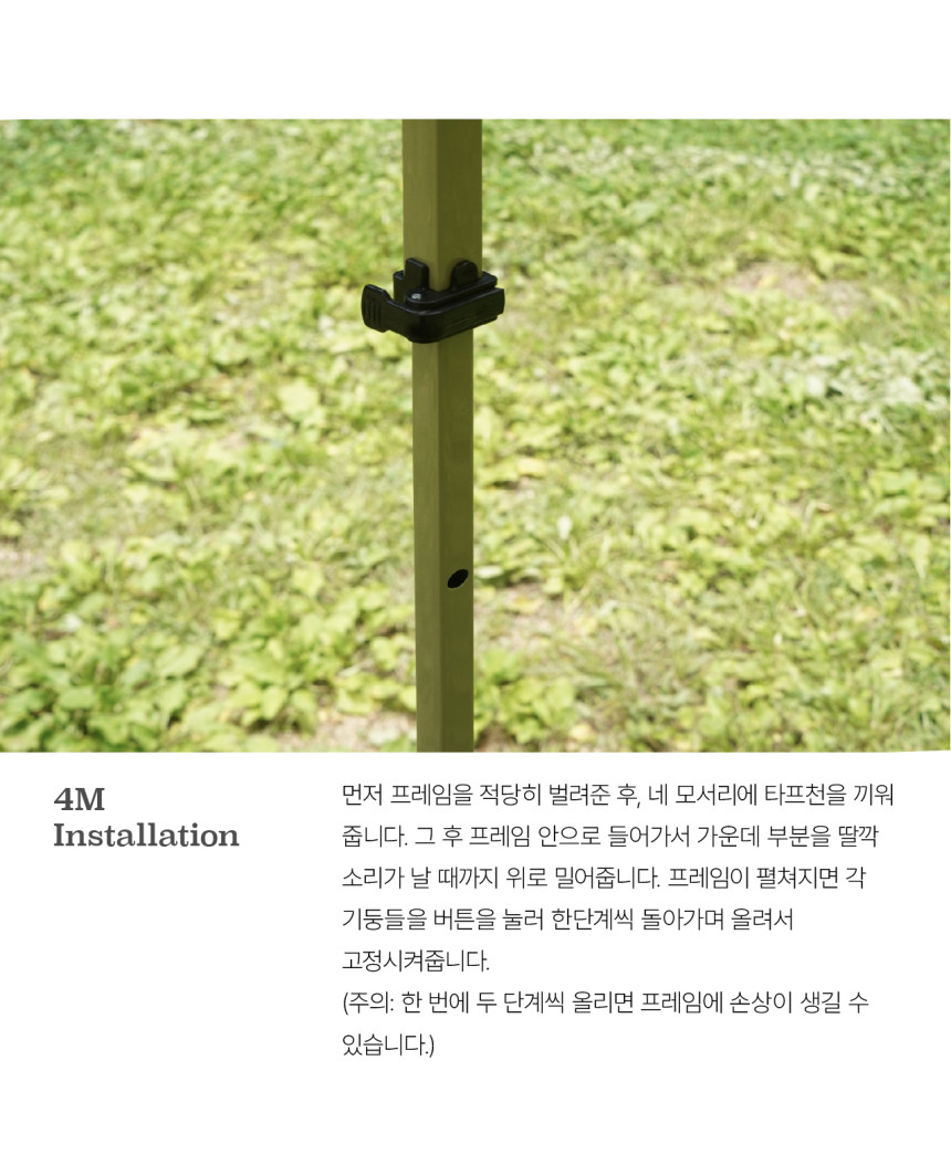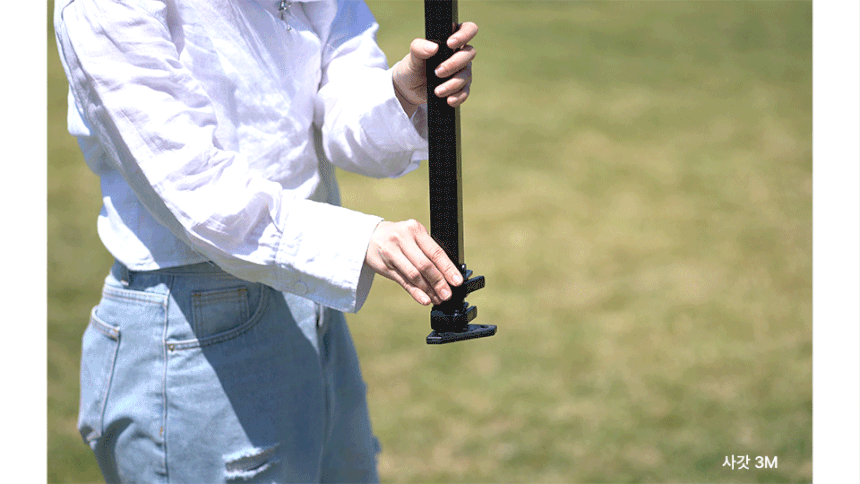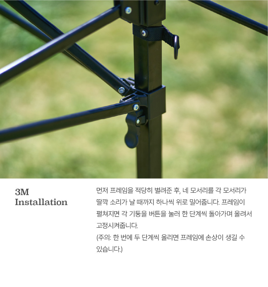 2. 프레임이 펼쳐지면 각 기둥 버튼을 눌러 한단계씩 돌아가며 올려서 고정시킵니다.