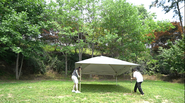 1. 프레임을 펼친 후, 네 모서리를 각 모서리가 딸깍 소리 날때까지 하나씩 위로 밀어 줍니다.
